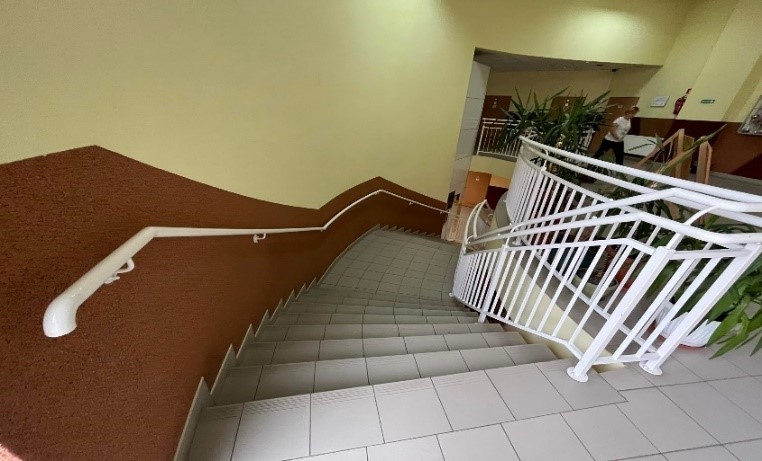 Pionowe ciągi komunikacyjne są przestronne i nie stanowią barier dla osób ze szczególnymi potrzebami. Klatki schodowe zaopatrzone są obustronnie w poręcze.